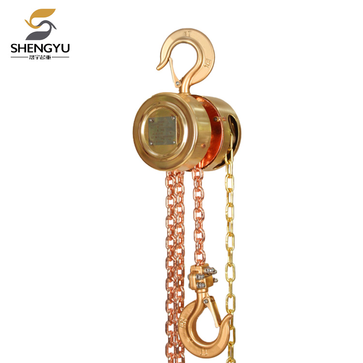 ড্রাইভ হুইল, বাদাম, হ্যান্ড পুল চেইন হুইল, সাপোর্ট রড, কভার শেল, বাম এবং ডান প্রাচীর প্যানেল: এই সমস্ত উপাদানগুলি H62 ব্রাস দিয়ে তৈরি। তাদের উচ্চ শক্তি এবং চমৎকার পরিধান প্রতিরোধের আছে। চেইন লিঙ্কগুলির মধ্যে ঘর্ষণ স্ফুলিঙ্গ বা বিস্ফোরণের মতো কোনও বিরূপ প্রতিক্রিয়া সৃষ্টি করবে না।