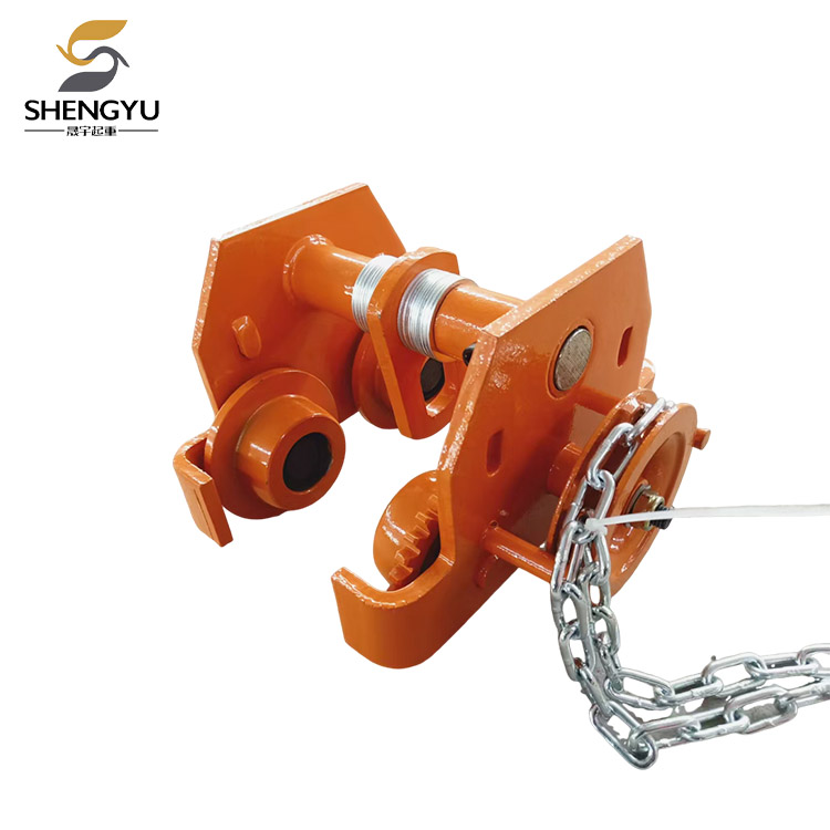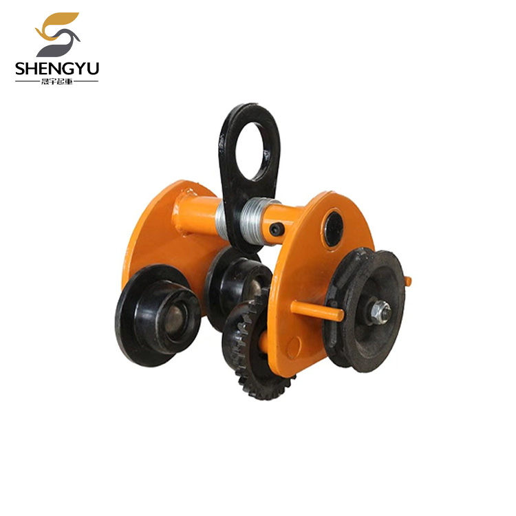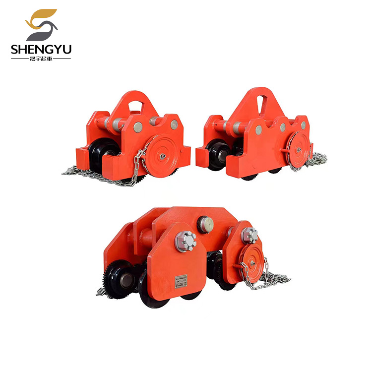 একটি হ্যান্ড চেইন দ্বারা চালিত, তারা আই-বিম ট্র্যাকের নীচের প্রান্ত বরাবর ভ্রমণ করে। একটি চেইন উত্তোলন দিয়ে সজ্জিত করা হলে, এটি সরঞ্জাম উত্তোলনের জন্য একটি মোবাইল সাসপেনশন পয়েন্ট হিসাবে কাজ করে। এইভাবে, গিয়ারযুক্ত ট্রলি শুধুমাত্র ভারী বস্তুকে উল্লম্বভাবে তুলতে পারে না বরং ভারী বস্তুর বাম এবং ডানদিকে চলাচলও সক্ষম করে।