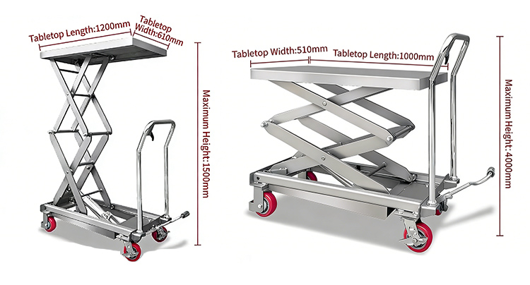 2. কাঠামোগত এবং কার্যকরী কাস্টমাইজেশন: ম্যানুয়াল বা বৈদ্যুতিক/হাইড্রোলিক পাওয়ার বিকল্পগুলি উপলভ্য, পাশাপাশি ভাঁজ করা গার্ডেল এবং সর্বমুখী নীরব চাকার মতো সংযোজন। ভাঁজযোগ্য বডি ডিজাইন সীমিত স্থানের জন্য উপলব্ধ, এবং বিপজ্জনক পরিবেশের জন্য বিস্ফোরণ-প্রমাণ নকশা যোগ করা যেতে পারে।